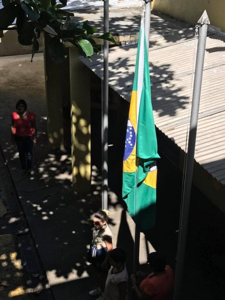 Todas as segundas-feiras nossos funcionários e alunos se reúnem, antes do começo das aulas, para homenagear a nossa pátria, entoando o Hino Nacional.