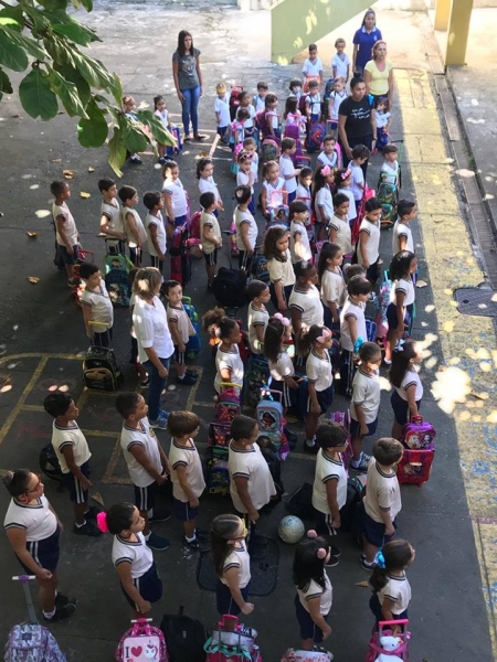 Todas as segundas-feiras nossos funcionários e alunos se reúnem, antes do começo das aulas, para homenagear a nossa pátria, entoando o Hino Nacional.