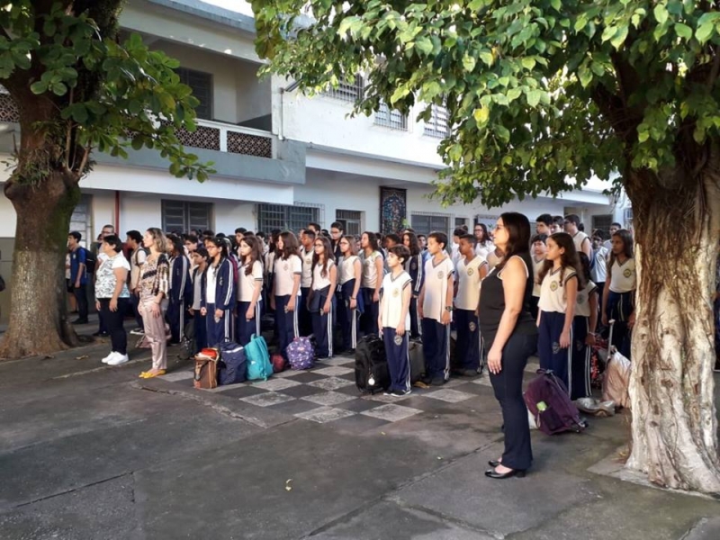 Todas as segundas-feiras nossos funcionários e alunos se reúnem, antes do começo das aulas, para homenagear a nossa pátria, entoando o Hino Nacional.