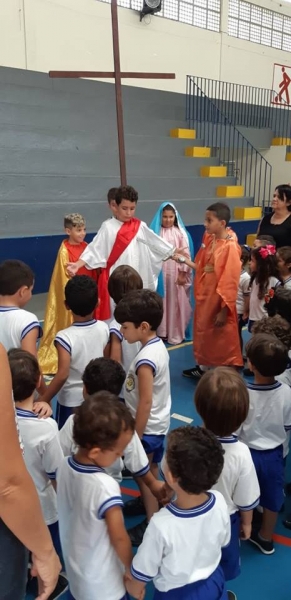 Foi realizada no dia 17 de abril na Escola Padre Butinhá a Via-sacra. Participaram os alunos da Educação Infantil e Ensino Fundamental I (1º e 2º Turno). A “Paixão de Cristo” foi rememorada e a emoção tomou conta de todos.