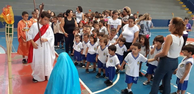 Foi realizada no dia 17 de abril na Escola Padre Butinhá a Via-sacra. Participaram os alunos da Educação Infantil e Ensino Fundamental I (1º e 2º Turno). A “Paixão de Cristo” foi rememorada e a emoção tomou conta de todos.