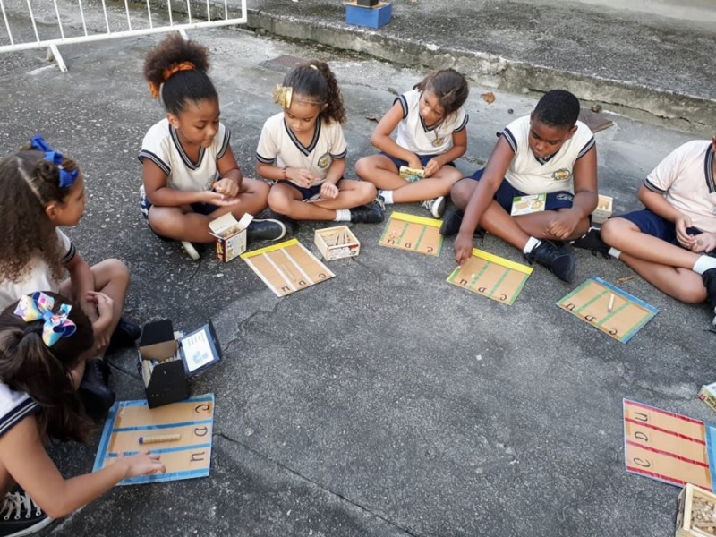 As primeiras atividades sistematizadas propostas com o material dourado, e sua representação em papel, têm como objetivo fazer com que o aluno perceba as relações entre as peças e compreenda as trocas no Sistema de Numeração Decimal. Trabalho realizado pela professora Elizangela com o 2° ano, turmas 201 e 202.