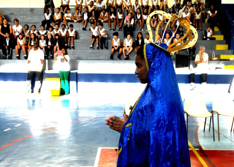 Para nossa Comunidade Escolar, coroar Nossa Senhora é demonstrar que a reconhecemos como rainha. Rainha de um reino que não é o desse mundo, mas sim o reino sonhado por Deus para seus filhos e filhas e, com sua aceitação ela demonstra que é possível uma pessoa fazer de sua vida uma constante escuta da vontade de Deus.