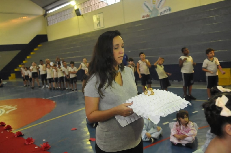 Para nossa Comunidade Escolar, coroar Nossa Senhora é demonstrar que a reconhecemos como rainha. Rainha de um reino que não é o desse mundo, mas sim o reino sonhado por Deus para seus filhos e filhas e, com sua aceitação ela demonstra que é possível uma pessoa fazer de sua vida uma constante escuta da vontade de Deus.