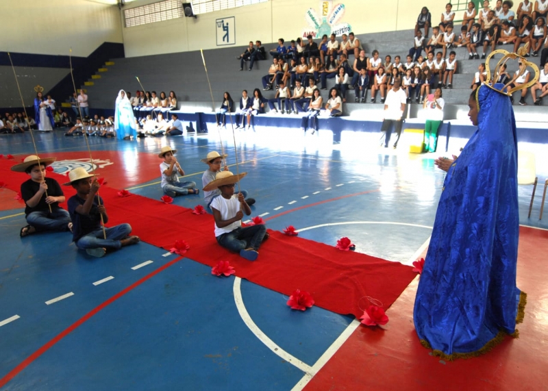 Para nossa Comunidade Escolar, coroar Nossa Senhora é demonstrar que a reconhecemos como rainha. Rainha de um reino que não é o desse mundo, mas sim o reino sonhado por Deus para seus filhos e filhas e, com sua aceitação ela demonstra que é possível uma pessoa fazer de sua vida uma constante escuta da vontade de Deus.