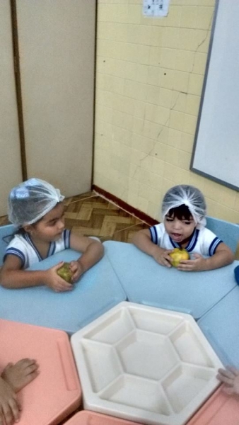 Na aula da professora Rochele, o Maternal (turno da tarde) participou de uma atividade sobre o Dia da Fruta. A proposta foi conhecer frutas, sentir o cheiro, o sabor e no fim do dia fazer um lanche saudável e delicioso.