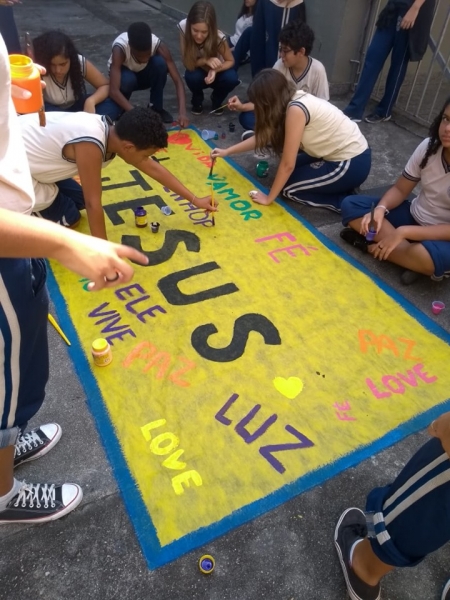 O Nono Ano recebeu a missão de preparar a faixa que seria apresentada na Celebração de Páscoa em nossa escola! Missão dada é missão cumprida para esta turma incrível! Parabéns! Aula de Educação Religiosa, professora Geise.