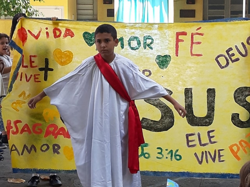 A Escola Padre Butinhá, no dia 26/04, representou a Ressurreição de Jesus com a participação dos alunos. A Páscoa Cristã nos conduz a termos esperança em um mundo melhor. A Escola Padre Butinhá agradece à todos pelo empenho e dedicação, em especial, Irmã Azucena (Coordenadora da Pastoral Escolar). ????