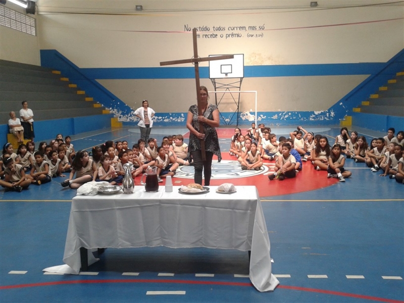 As turmas do 1º ao 9º Ano, do período da manhã, participaram da representação da passagem do Lava-Pés,com a supervisão dos professores Gama e Cristina. No período da tarde, os pais participaram, também, contracenando para os alunos! Olha que demais!